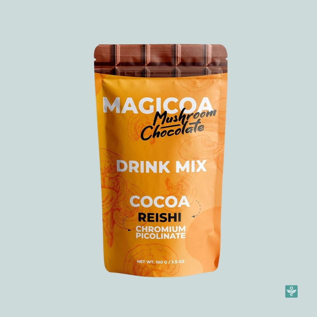 Magicoa est un mélange en poudre aromatisé au chocolat, vendu comme boisson de soutien à la gestion du poids. Les pages produit le décrivent comme une boisson amincissante « adaptogène » à base de poudre de cacao alcalinisée, d’extrait de champignon reishi, de chicorée et d’autres additifs. Il se mélange à de l’eau tiède ou chaude et se prend avant ou pendant les repas.