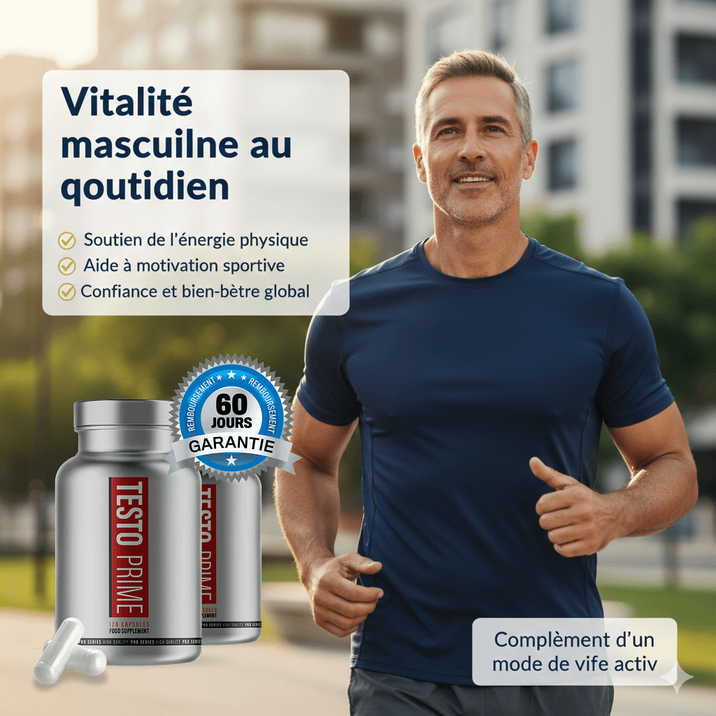 TestoPrime est un complément alimentaire et non un médicament. Il est destiné à soutenir la vitalité masculine, l’énergie et l’équilibre hormonal dans le cadre d’un mode de vie sain. Ce produit ne remplace pas un traitement médical des troubles hormonaux diagnostiqués, des troubles érectiles sévères d’origine médicale ou des maladies endocriniennes, ni une alimentation équilibrée, une activité physique régulière et un sommeil suffisant.